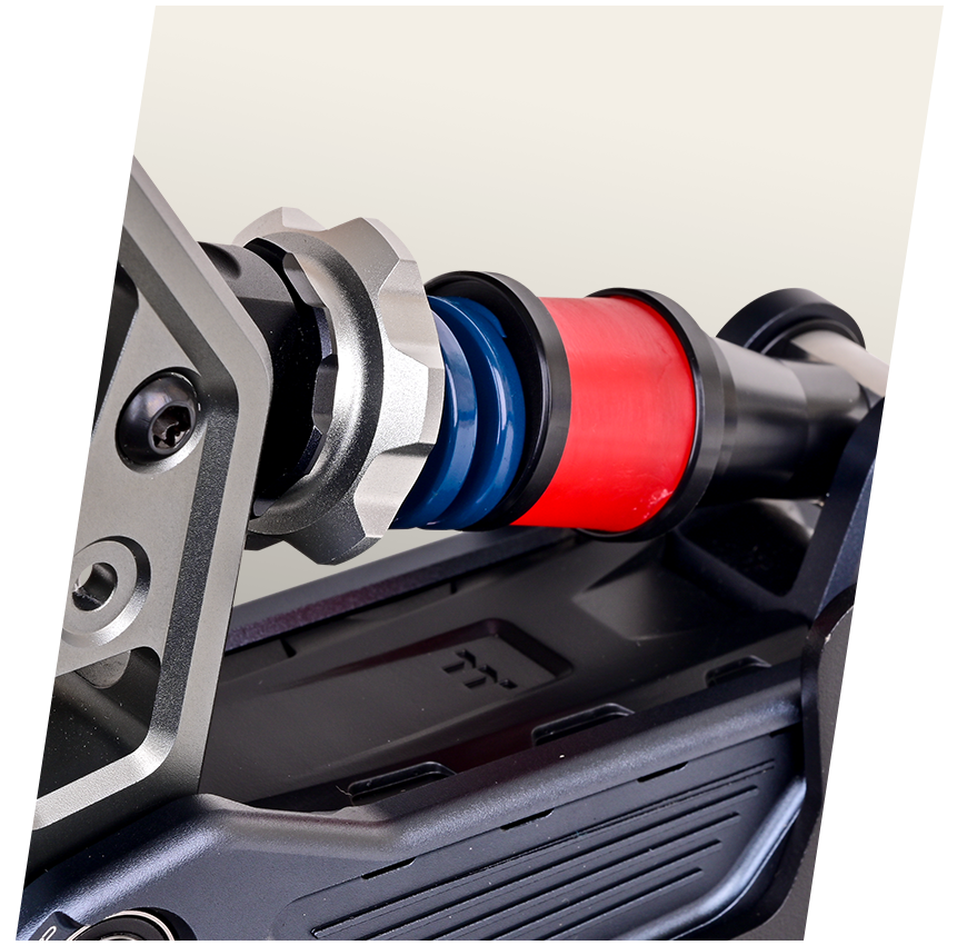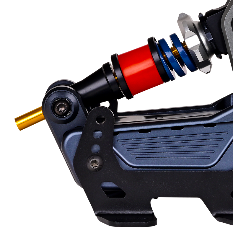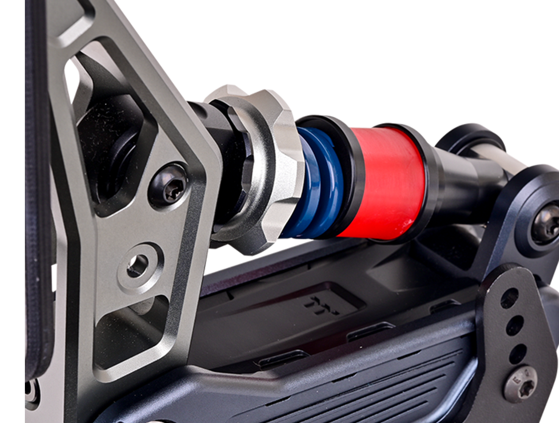 The throttle offers adjustable pedal throw and spring preload, delivering smooth, accurate input through a 16-bit Hall sensor, self-lubricating nylon sleeve, and precision ball bearings. On the brake side, a 200 kg load cell combined with interchangeable springs and rubber dampers provides highly tunable resistance and realistic braking feedback.